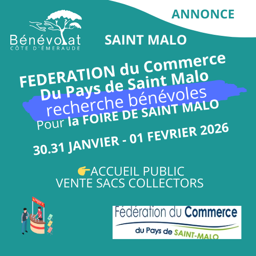 La Fédération du Commerce et de l’Artisanat du Pays de Saint‑Malo recherche des bénévoles pour assurer les 30, 31 Janvier et 1er Février 2026: